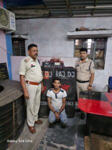 रात्रि तेज आवाज में डीजे बजाने पर जूटमिल पुलिस ने किया डीजे जब्त, युवक पर कोलाहल अधिनियम की कार्रवाई