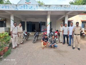 पुसौर साप्ताहिक बाजार से बाइक चोरी करने वाले गिरोह का भंडाफोड़, पांच मोटरसाइकिल बरामद, दो आरोपी गिरफ्तार