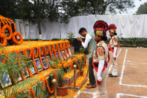 इस अवसर पर कलेक्टर श्री मयंक चतुर्वेदी, डीएफओ श्री अरविंद पी.एम., सीईओ जिला पंचायत श्री अभिजीत बबन पठारे, सेनानी 6वीं वाहिनी श्रीमती निवेदिता पॉल,सीएसपी मयंक मिश्रा, उप सेनानी श्री बृजेश तिवारी तथा शहीदों के परिजन एवं बड़ी संख्या में पुलिसकर्मी उपस्थित रहे। सभी अतिथियों एवं अधिकारियों ने शहीद स्मारक पर पुष्पचक्र अर्पित कर वीर पुलिस जवानों को श्रद्धांजलि अर्पित की।