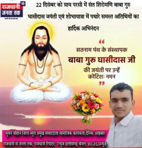 22 दिसंबर को ग्राम परसी में संत शिरोमणि बाबा गुरु घासीदास जी के जयंती एवं शोभायात्रा,