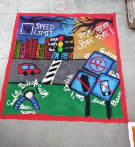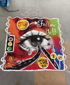 प्रतियोगिता के दौरान छात्र-छात्राओं ने सड़क दुर्घटनाओं के दुष्परिणाम, यातायात नियमों के पालन, हेलमेट व सीट बेल्ट की अनिवार्यता, ओवरस्पीडिंग से बचाव जैसे महत्वपूर्ण विषयों पर प्रभावशाली चित्र, स्लोगन एवं रंगोली के माध्यम से आमजन को जागरूक करने का संदेश दिया। बच्चों की रचनात्मकता और सामाजिक सरोकार से जुड़े विचारों की सभी ने सराहना की।