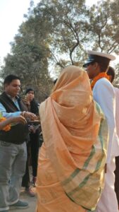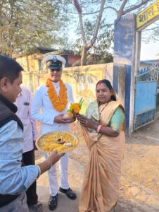 सक्ति।भुवन चौहान।।शा.पूर्व माध्यमिक कन्या शाला घोघरी विकास खंड मालखरौदा की शिक्षिका एवं जिला शक्ति की प्रथम महिला राज्यपाल पुरस्कृत नवाचारी शिक्षिका प्रतिभा यादव जो अपने शैक्षिक नवाचारों, गतिविधि आधरित शिक्षण पद्धति से बच्चों को शिक्षित कर उनके सर्वांगीण विकास के लिए शिक्षा विभाग में पहचानी जाती है उन्होंने अपने पति गणेश राम यादव, बेटी देविका यादव एवं उनके शाला की होनहार छात्रा सौन्दर्य चंद्रा के साथ सक्ति जिले की प्रथम महिला भारतीय नौसेना निक्की जायसवाल को चार माह की सफलता पूर्वक प्रशिक्षण पूर्ण कर प्रथम बार अपने गृह ग्राम घोघरी आगमन पर बहुत हर्षोल्लास के साथ हस्ते मुस्कुराते हुए आरती कर पुष्प माला ,पुष्पगुच्छ, और श्रीफल, भेंट कर भारत माता की जय, और बंदे मातरम् की ओजस्वी स्वर के साथ नारा लगाकर भव्य आत्मीय स्वागत सम्मान किया गया ,शिक्षिका ने बहादुर बेटी निक्की को आशीर्वाद देकर कहा कि हम सब को आप पर गर्व है l हमेशा आपको सफलता मिलती रहे इसी तरह अपने माता पिता ,अपने गुरुजनों और अपने देश का नाम रौशन करते रहे, उनके माता पिता एवं गांव के सभी गणमान्य नागरिकों द्वारा स्वागत रैली का प्रारंभ छपोरा के घाटगोसईन मंदिर में पूजा अर्चना से शुरू होकर ग्राम घोघरी के गृह निवास तक तिरंगा लहराते हुए देशभक्ति गीतों के साथ किया गया l सभी ने बहुत गौरांवित महसूस कर रहे थे lशिक्षिका ने बताया कि इस तरह स्वागत सम्मान करने से गांव के सभी बच्चों में देश भक्ति की भावना प्रेरित होगी सभी में देश भक्ति, देश प्रेम का जज्बा बढ़ेगा, आगे बढ़कर देश के लिए काम करें भारत माता की सेवा करें शिक्षिका ने निक्की बिटिया उनके माता पिता, भाई बहन और उनके स्वागत सम्मान में उपस्थित छत्तीसगढ़ एकेडमी के सभी ऑफिसर को बधाई दिया l