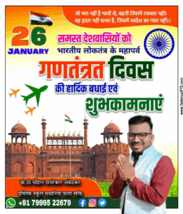 शुभेच्छुक बी डी चौहान डायरेक्टर अंबेडकर पब्लिक स्कूल मसानिया कला सक्ति