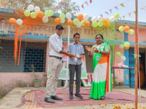 सक्ति।शा. पूर्व माध्यमिक कन्या शाला घोघरी विकास खंड मालखरौदा जिला शक्ति में प्रत्येक वर्ष की भाती इस वर्ष भी 77 गणतंत्र दिवस बहुत धूमधाम से देश भक्ति गाने के साथ तिरंगा लहराते हुए भव्य झांकी के साथ प्रभात फेरी निकाली गईं l ग्राम सरपंच मनीराम चौहान और विशिष्ठ अतिथि शक्ति जिले की प्रथम भारतीय नौसेना निक्की जायसवाल के आतिथ्य में सभी कार्यक्रम बहुत ही हर्षौल्लास से मनाया गया l मनीराम चौहान सरपंच जी के द्वारा राष्ट्रीय ध्वज तिरंगा झंडा फहराया गया l छात्र छात्रों द्वारा परेड कर तिरंगा झंडा और अतिथियों को सलामी दी गई भारतीय नौसेना निक्की जायसवाल को विद्यालय परिवार की ओर से राज्यपाल पुरस्कृत नवाचारी शिक्षिका प्रतिभा यादव ने बैच लगाकर, पुष्पमाला पहनाकर स्वागत किया गया और विद्यालय परिवार के परिवार की ओर से स्मृति चिन्ह देकर सम्मानित किया भारतीय नौसेना निक्की जायसवाल ने बच्चों को अपने उदबोधन में कहा कि देश सेवा के लिए जुनून होना जरूरी है आप सभी आगे बढ़कर देश सेवा करें l उन्होंने कहा कि मुझ में जुनून था इसलिए मेरा चयन देश सेवा के लिए भारतीय नौसेना में हुआ l मुझे बहुत गर्व महसूस होता है l सम्मान की कड़ी में अग्निवीर सैनिक मनीष कुमार जायसवाल के पिता मंथीर जायसवाल, को स्मृति चिन्ह देकर सम्मानित किया गया l गणतंत्र दिवस के शुभ अवसर पर सामूहिक राष्ट्रगान , राष्ट्रगीत राजगीत,गाया गया l भारत माता, वंदे मातरम, जय हिंद, गणतंत्र दिवस अमर रहे के नारा गूंज उठा l पूरे भवन को रंगबिरंगे तोरण, और तिरंगा गुब्बारा से सजाया गया l फैंसी ड्रेस अभिनय में सौंदर्य चंद्रा और भूमि विश्वकर्मा भारत माता का सिमरन पटेल और आंचल सीदार छत्तीसगढ़ महतारी का , शशि चंद्रा, और अलका पटेल झांसी की रानी का एवं दीपिका पटेल माता सावित्री बाई फूले का अभिनय कर रहे थे l जो बहुत ही आकर्षक केंद्र बिंदु रहा l शिक्षिका प्रतिभा यादव ने सभी बच्चों को तिरंगा झंडा, तिरंगा रिबन, बैच आदि वितरण किया l सांस्कृतिक कार्यक्रम, एवं साहित्यिक कार्यक्रम मे भाग लेने वाले सभी बच्चों को गिफ्ट , कलम आदि देकर सभी बच्चों को सम्मानित किया गया l प्रभात फेरी विद्यालय से निकल कर घोघरी के पंचायत कार्यालय, प्राथमिक स्वास्थ् केंद्र , मंडी, आंगनबाड़ी केंद्र होते हुए पूरे गांव में घुमाया गया l प्रभात फेरी में तिरंगा रैली, देश भक्ति गाने के साथ निकाली गई जो ऐतिहासिक रहा l सभी ग्रामवासियों ने भारत माता की अभिनय कर रही बेटियों की पूजा अर्चना कर पुष्प श्रीफल देकर सम्मानित किया ,पूरे कार्यक्रम में सभी पंचगण ,सचिव, मितानिन,smc के अध्यक्ष, सदस्य, एवं गांव के गणमान्य नागरिक उपस्थित रहे अंत में नारियल, लडडू, चाकलेट,आदि मिठाई वितरण किया गया l