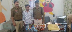 इसी क्रम में आज दिनांक 21.02.2026 को कोतवाली पुलिस ने इंदिरानगर चौक के आगे बड़ी कार्रवाई करते हुए *अर्जुन चौहान पिता रामलाल चौहान उम्र 25 वर्ष निवासी इंदिरानगर* को उसके घर के अंदर कमरे में अवैध रूप से शराब रखकर बिक्री करते पकड़ा। पुलिस ने मौके से देशी प्लेन एवं मसाला शराब के 29 पौव्वा तथा बिक्री की रकम 300 रुपये गवाहों के समक्ष जप्त की। आरोपी के विरुद्ध थाना कोतवाली में धारा 34(2), 59(क) आबकारी एक्ट के तहत वैधानिक कार्रवाई की गई है।