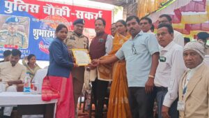 राजधानी से जनता तक।सक्ती जिले के ब्लॉक मालखरौदा अंतर्गत ग्राम सकर्रा में नवीन पुलिस चौकी का भव्य शुभारंभ हुआ, इस अवसर पर मुख्य अतिथि श्री राम गोपाल गर्ग (भा.पु.से.) पुलिसमहानिरीक्षक,रायपुर रेंज (छ.ग.) विशिष्ट अतिथि श्रीमान रामकुमार यादव जी विधायक चंद्रपुर, श्री प्रफुल्ल ठाकुर(भा.पु.से.) पुलिस अधीक्षक, जिला सक्ती (छ.ग.), श्रीमान बरत लाल सूर्यवंशी सरपंच ग्राम पंचायत सकर्रा, श्रीमती पूर्णिमा चंद्रप्रकाश खूंटे जिला पंचायत सदस्य सक्ति,श्रीमान कवि शरण वर्मा जी अध्यक्ष जनपद पंचायत मालखरौदा, श्री कृष्ण रात्रे जी अध्यक्ष नगर पंचायत अड़भार, श्रीमती खिक बाई मनहरण कमलेश जी जनपद सदस्य मालखरौदा,श्री नवीन राजपूत जी टी.ई.थाना मालखरौदा,श्री संजू गबेल उपसरपंच ग्राम पंचायत बुंदेली,श्री सोमनाथ रात्रे जी पूर्व सरपंच प्रत्याशी ग्राम पंचायत बुंदेली,अतिथियों के द्वारा सर्वप्रथम भारत रत्न बाबा साहब भीमराव अंबेडकर जी, सरस्वती माता जी,भारत माता जी, छत्तीसगढ़ महतारी जी,के छायाचित्र पर दीप प्रज्वलित कर कार्यक्रम का शुभारंभ किया गया। तत्पश्चात अतिथियों का बैच लगाकर स्वागत किया गया। चौकी के प्रथम प्रभारी ए.एस.आई. श्री कृष्णा कुमार राठौर सहित पुलिस विभाग के स्टाफ सहित ग्रामीण एवं वरिष्ठ नागरिक भारी संख्या में उपस्थित रहे। उद्घाटन समारोह के दौरान क्षेत्र की सुरक्षा व्यवस्था को मजबूत बनाने तथा आम जनता को त्वरित पुलिस सहायता उपलब्ध कराने की बात कहीं गई। ग्राम सकर्रा तथा आसपास के ग्रामीण क्षेत्रों में बढ़ती जनसंख्या और सुरक्षा आवश्यकताओं को ध्यान में रखते हुए इस नवीन पुलिस चौकी की स्थापना की गई है। इसके प्रारंभ होने से क्षेत्र में कानून व्यवस्था को और अधिक सुदृढ़ बनाने, अपराधों पर नियंत्रण रखने तथा किसी भी आपात स्थिति में लोगों को तुरंत पुलिस सहायता उपलब्ध कराने में काफी सुविधा मिलेगी।